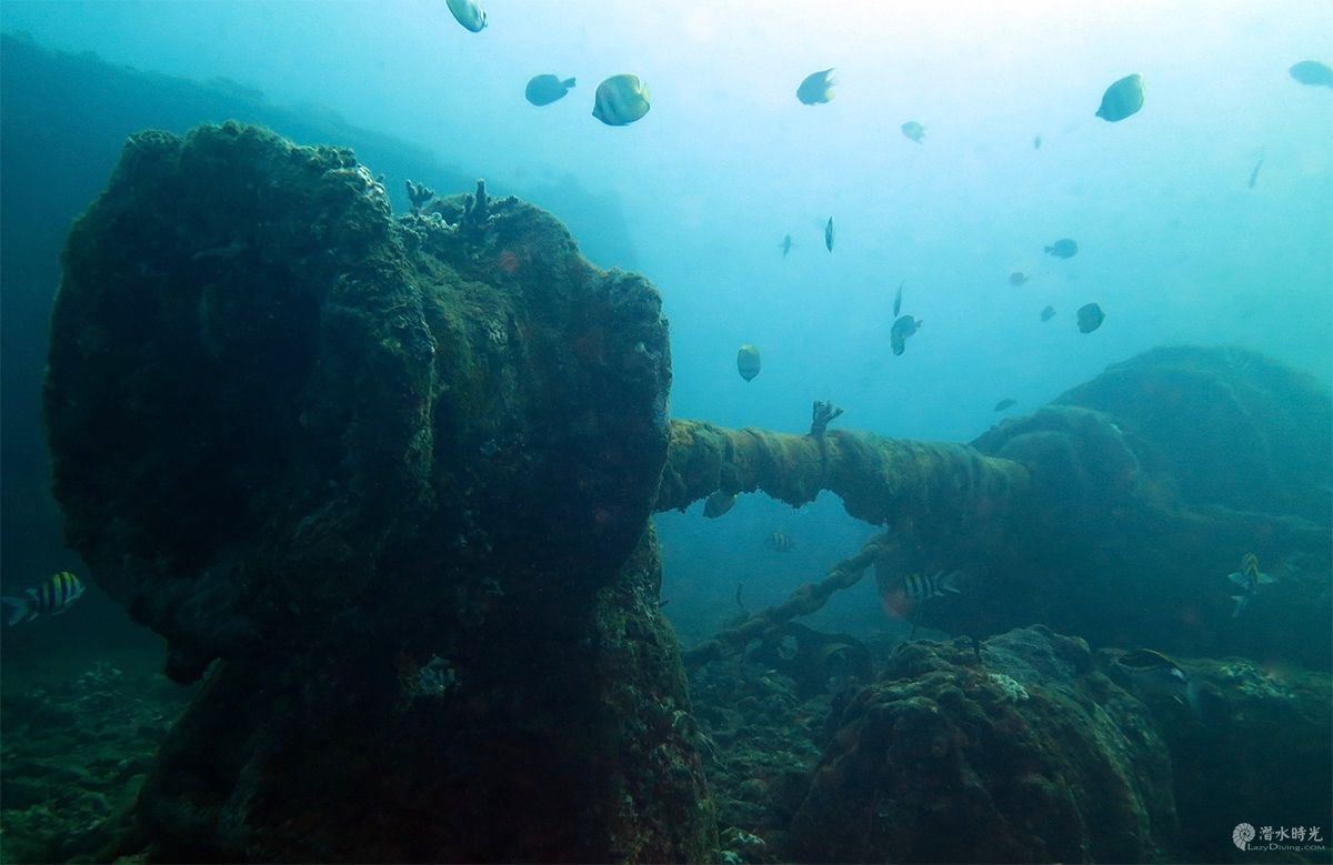这艘船长137米,高17米,船身巨大,在富裕的印度尼西亚水域下50多年后,被珊瑚覆盖,是个独立的生态系统,物种也不少。 整艘沉船完整,船尾最浅的部分,桅杆在大约13米的水深处,船头甲板约30米深,底部约45米深。从潜店坐船过去15分钟。和大部分的沉船点一样,这里的能见度通常不太好,在合适的潮流下,也有时不错。